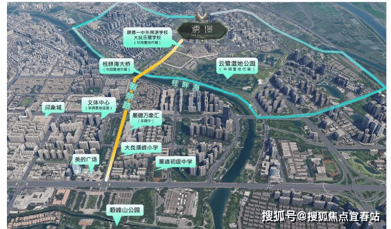澐璟的交通能级,远超普通改善盘。项目步行可达佛山地铁3号线驹荣北路站(已通车),30分钟直达广州南站,无缝接入广佛1小时生活圈。地面路网方面,桂畔海大桥(预计2026年建成)正在加速施工,建成后将直接串联大良东区与云鹭片区,1公里内接驳碧桂路、南国东路等主干道。从澐璟出发,5分钟到顺峰山公园,10分钟达华侨城欢乐海岸PLUS,15分钟覆盖区政府、人民医院等核心节点。值得注意的是,随着顺德“东拓”战略推进,云鹭片区已成为政府重点投入区域,未来还将规划新增跨河通道与公交枢纽。短期虽有部分道路施工影响,但长期看,这里正从“边缘待开发”蜕变为“东区延伸黄金走廊”。